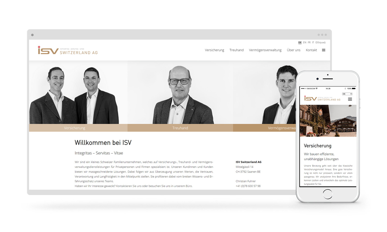 Neuer Internetauftritt inkl. Erscheinungsbild für die Firma «ISV Switzerland AG» aus Saanen BE. Aus der Firma GEMP Service AG wird im Jahr 2025 neu die Firma ISV Switzerland AG, welche Dienstleistungen für Versicherungen und Pensionskassen anbietet.